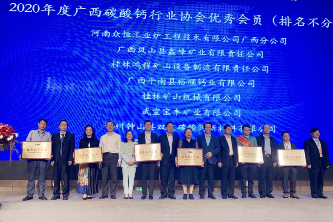 桂林礦(kuang)機作爲礦山機(jī)械的重要一員(yuan),公司從第一屆(jie)開始積極參與(yu)協會會議會展(zhan),公司領導也非(fei)常支持協會各(ge)項☀️工作并投身(shen)綠色發展道路(lu)。會中,公司領導(dao)肖文輝‼️獲得2020年(nian)✍️度廣西🍉碳酸鈣(gài)行業優秀企業(ye)家,同時公司還(hái)榮獲了廣西碳(tan)酸鈣行業協會(hui)優秀會員獎。