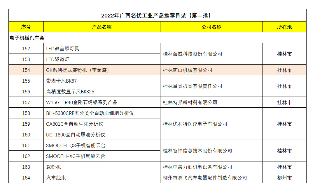 桂林(lin)礦機擺(bai)式磨粉(fěn)機入選(xuan)《廣西名(ming)優工業(ye)産品推(tui)薦目錄(lù)㊙️》