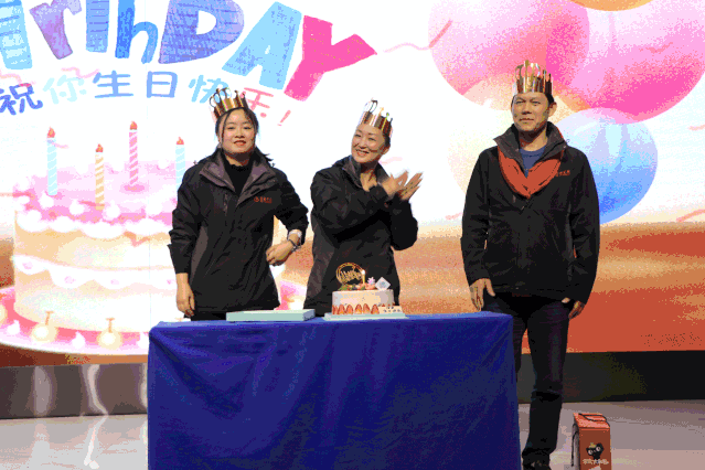 年(nian)會上,公(gōng)司還爲(wei)本月過(guo)生日的(de)員工舉(ju)行了生(sheng)日會。衆(zhong)人齊唱(chang)👌着生日(ri)祝福歌(ge),壽星們(men)頭戴着(zhe)皇冠,許(xǔ)💜下自己(ji)新一年(nián)的願望(wang)。