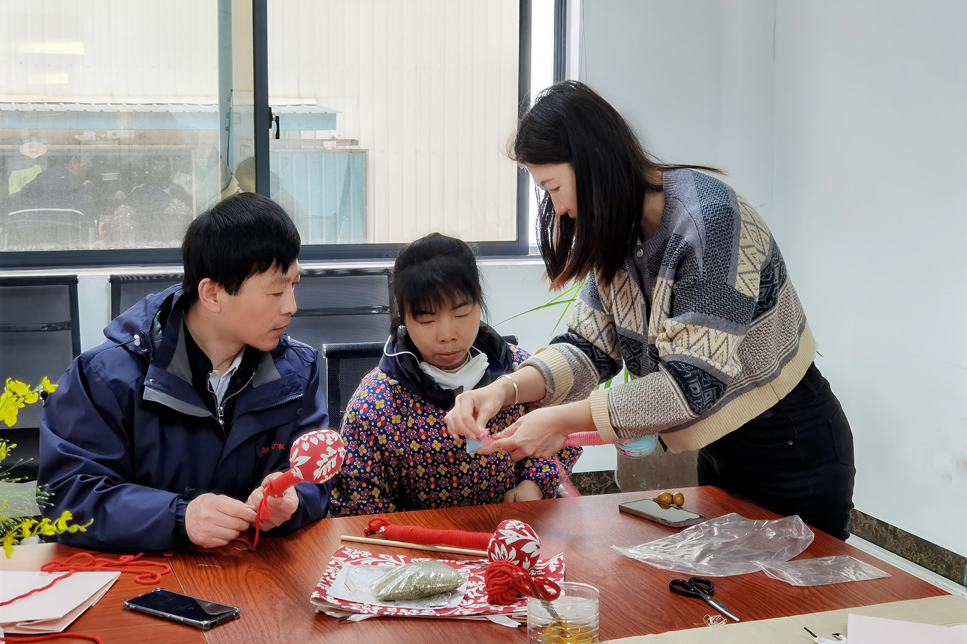 活動(dong)伊始,主持人介紹(shào)了養生錘的曆史(shi)與文化背景,讓女(nǚ)同事們對養生錘(chuí)有了更深刻的認(rèn)識,并通過視頻方(fāng)式讓❤️大家了解養(yang)生錘的制作方法(fǎ)和注意事項。女同(tóng)事們展現出了前(qián)所未有🈲的專注和(he)熱💯情,從選材、包紮(zha)、繞繩……,仔細打磨🈲每(měi)一個細節,仿佛在(zai)用自己的雙✔️手編(biān)制着生活的印記(jì)。