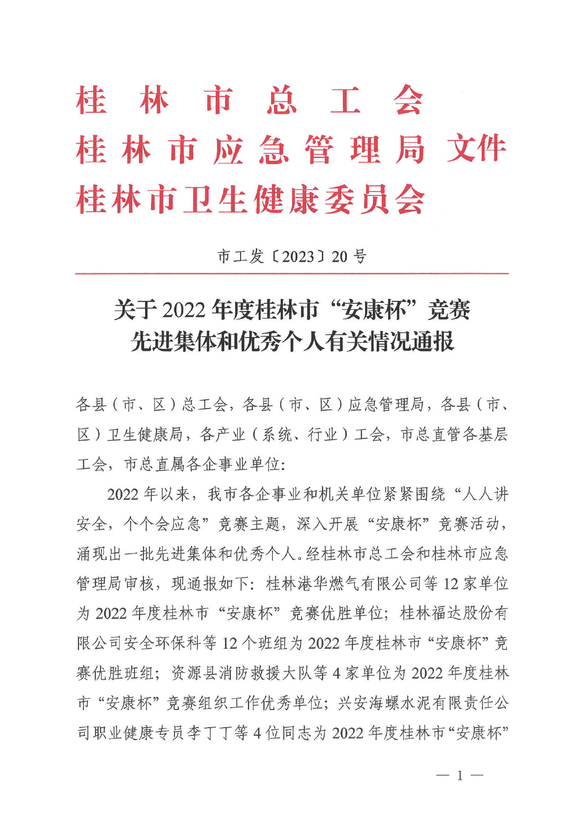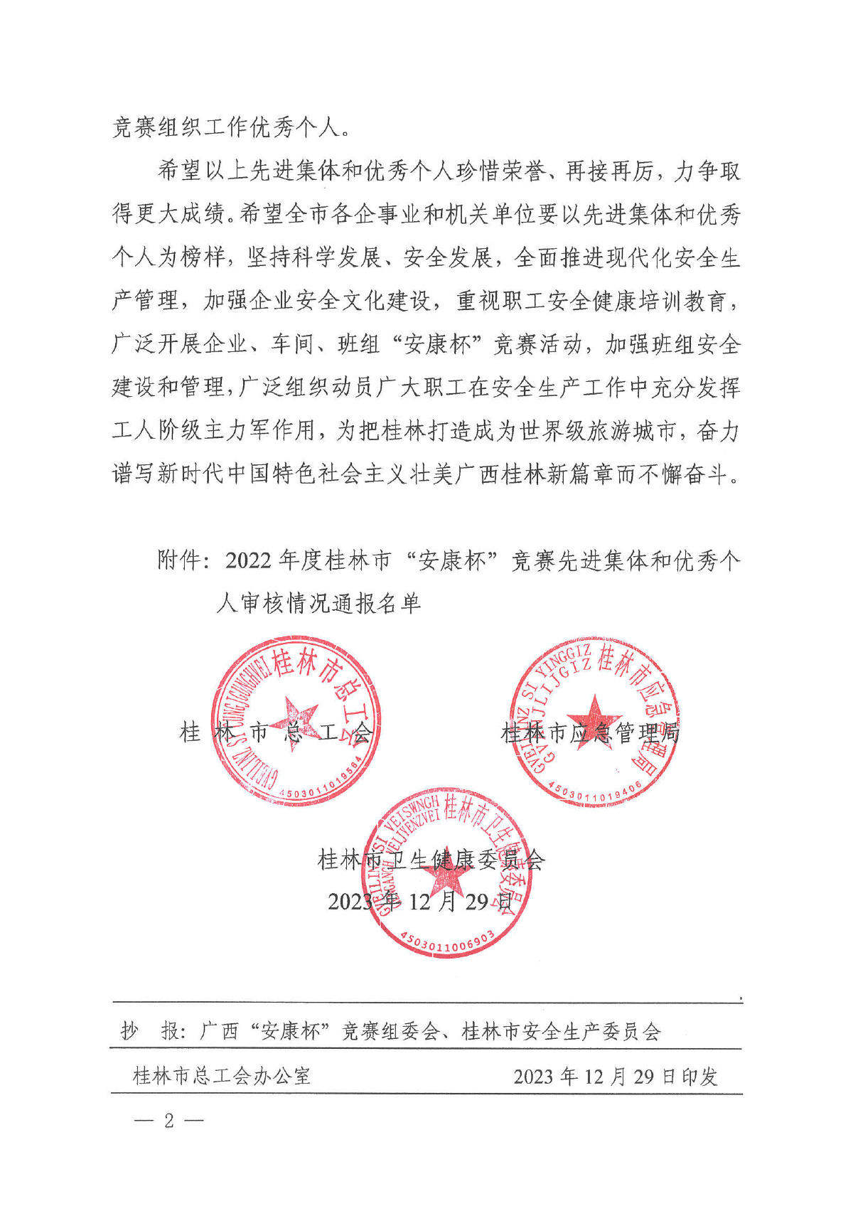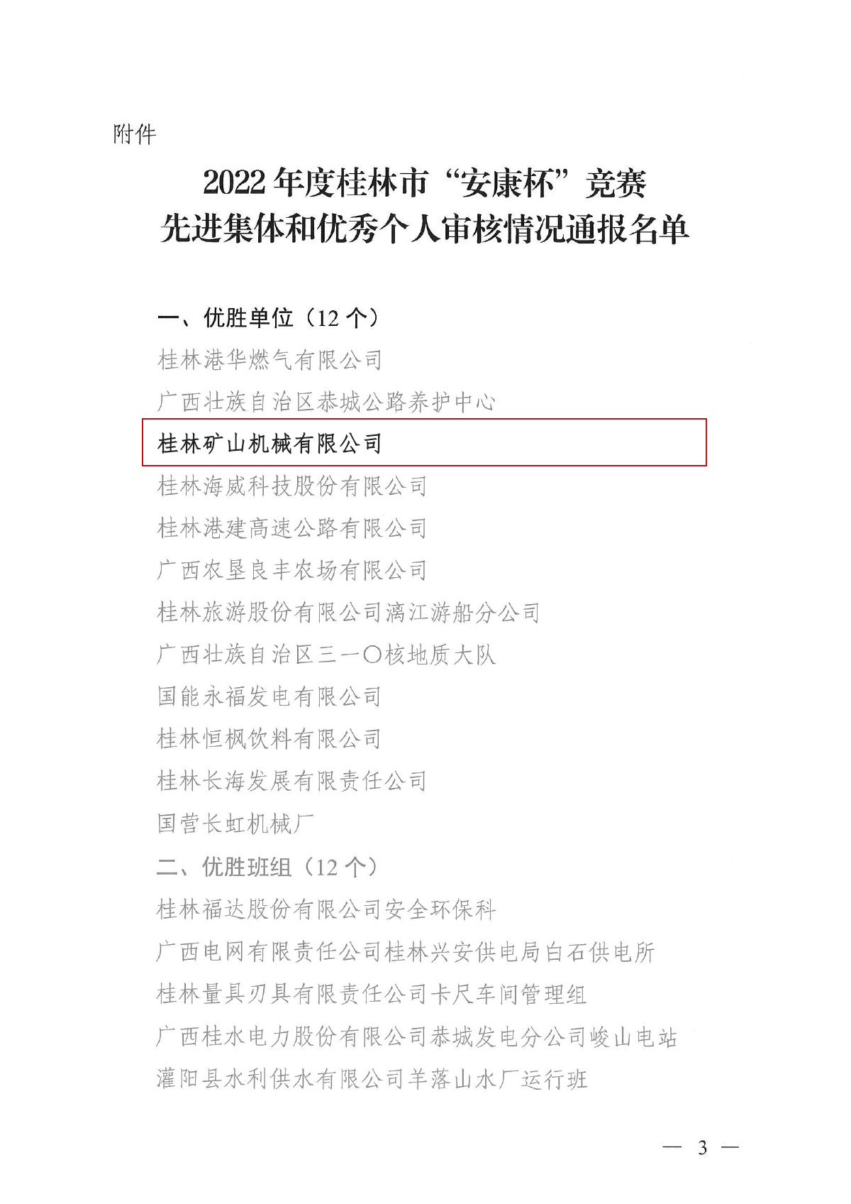 喜報!桂林(lín)礦機榮獲(huo)桂林市“安(ān)康杯”競賽(sài)先進集體(tǐ)🍉